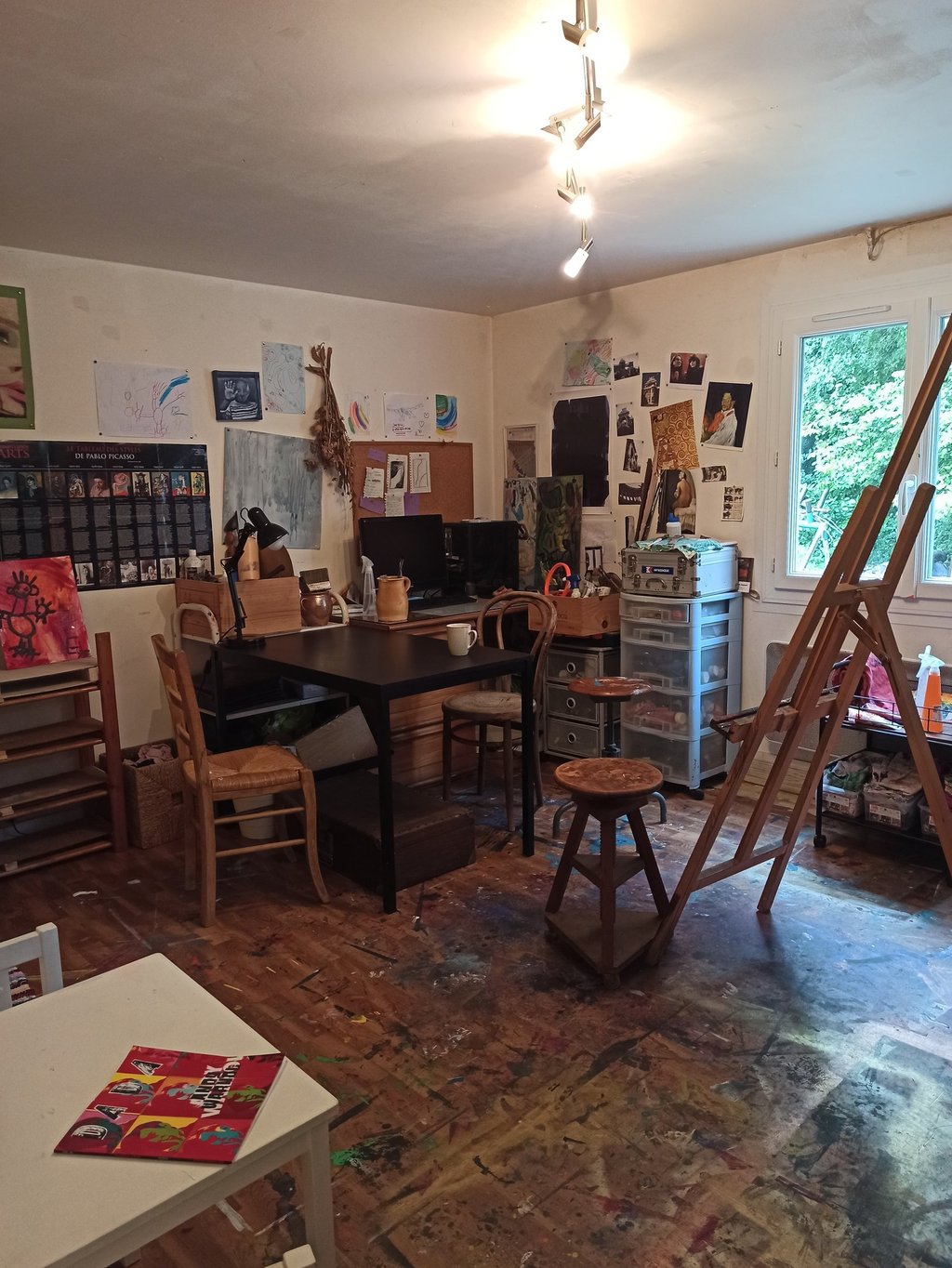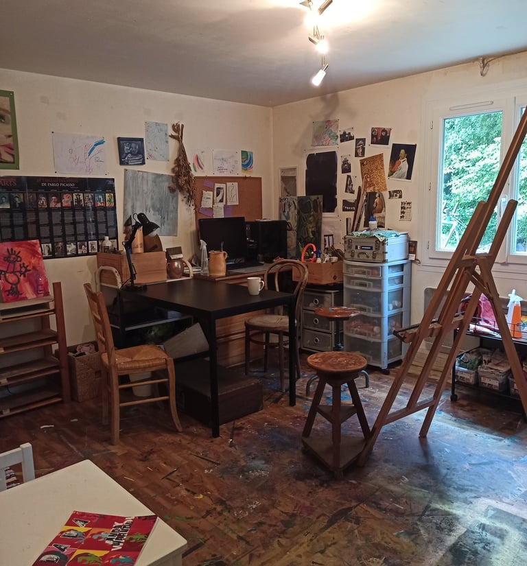 Je propose des ateliers de peinture en petit groupe (3 participants), pensés comme un espace doux et bienveillant pour :