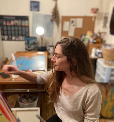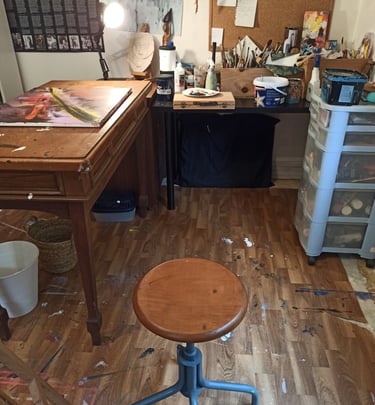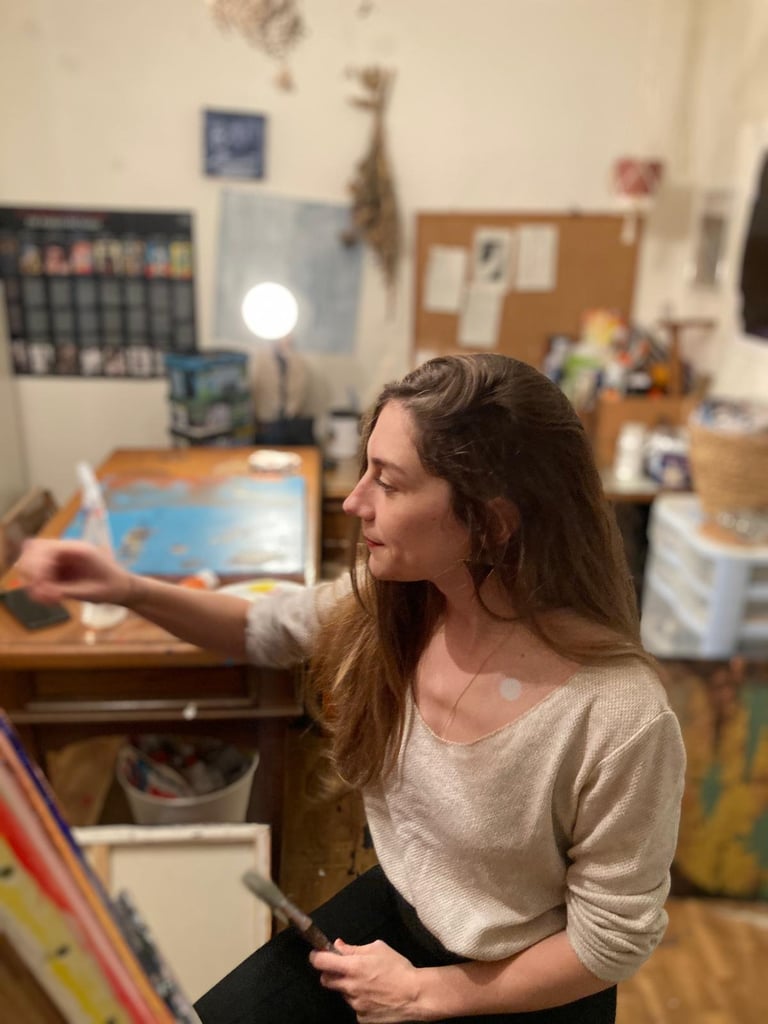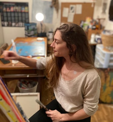 Je m’appelle Charlène DAVID, j’ai 35 ans et j’ai investi mon atelier de peinture depuis septembre 2024. Ce qui me fait vibrer, c’est l’abstrait : je m’inspire des émotions et de la nature, ces forces invisibles qui nous traversent. Je peins ce qui ne se voit pas — un ressenti, une impression, une émotion — tout ce qui vit en nous et qu'il est parfois difficile à décrire. Mon souhait est de toucher directement l’inconscient de celles et ceux qui regardent mes toiles, de leur permettre de débrancher le mental pour simplement se laisser emporter. Ne cherchez pas à voir une forme : ressentez simplement.